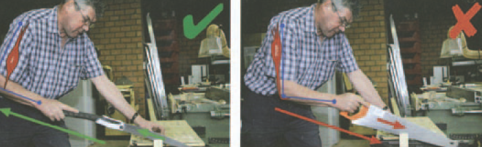 U tradičních pil řežete směrem od těla (tlakem). Při tomto způsobu řezání zabírá hlavně triceps, ale odlišným způsobem od běžné povahy jeho práce. Práce se tak po jisté době stává velmi únavná a snižuje se míra kontroly nad nástrojem. Navíc úhel mezi předloktím, zápěstím a pilou je ergonomicky nevhodný a zvyšuje riziko zánětu karpálního tunelu a tzv. tenisového lokte. U pil Silky se řez děje při cestě pily směrem k tělu (tahem). Při tomto způsobu řezání jsou úhly mezi nástrojem a paží ergonomicky daleko příznivější a navíc zabírá nejsilnější sval v paži – biceps. Práce je tak výrazně méně únavná i po delší době.